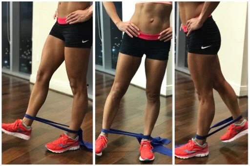 Runners can highly benefit from resistance band exercises since they are low intensity and effective at isolating muscle groups (on top of being extremely easy and convenient for any time of the day!). Below are moves that target three of the hip motions: help flexion (forward), hip abduction (side), and hip extension (back). A fourth motion, swinging the leg inward (or crossing over the opposite leg), requires the band to be attached to a stable object, rather than looped around the opposite ankle.
